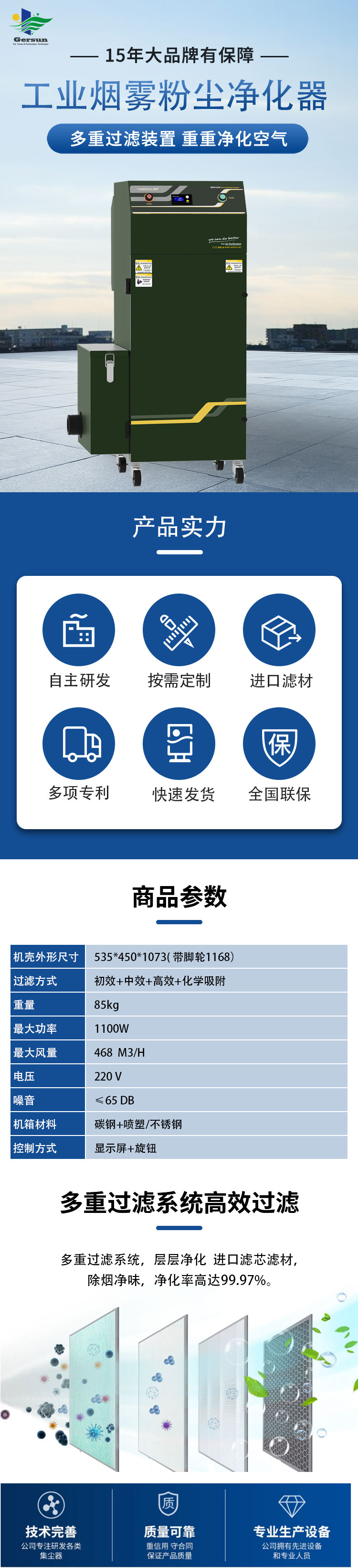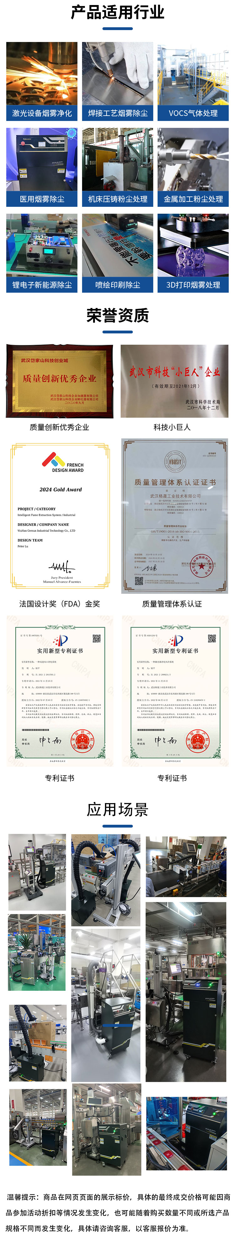 用于產生大量粉塵煙霧應用現場和對無塵、無味要求極高的場合,特別適用于含油、粘膠、PVC材質等有毒有害、黏性氣體有好的過濾效果。在制藥廠、化妝品廠等封閉車間尤其適用。經濟適用,性價比高。高智能自動化化、節能環保。